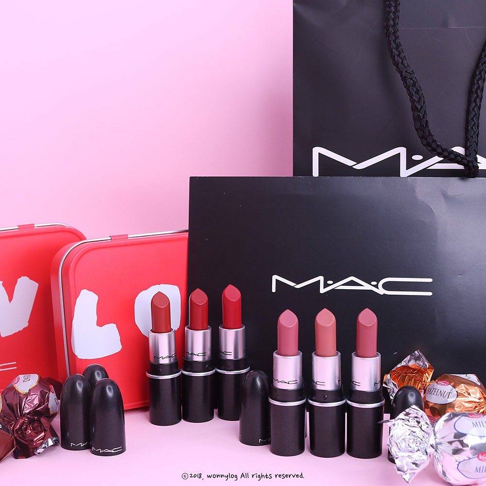 Bộ sưu tập son đặc biệt lần này mang tên Love, được MAC tung ra nhân dịp 8/3 sắp tới. BST bao gồm 2 phiên bản, phiên bản son nude và son đỏ, với mỗi bên bao gồm 3 thỏi son đựng trong hộp thiếc màu đỏ nổi bật. Tuy nhiên đây không phải là những thỏi son full size như thông thường mà son mini có trọng lượng chỉ 1,8g/thỏi. Trong đó tông đỏ bao gồm màu: Ruby Woo (son siêu lì dòng Retro Matte), Rusian Red và Chili (son lì dòng Matte); còn tông nude gồm: Twig (son nhiều dưỡng dòng Satin), Mehr và Velvet Teddy (son lì dòng Matte).